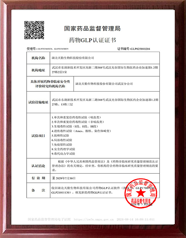 湖北天勤生物科技集團股份有限公司(簡稱天勤生物)成立于2009年,總部位于武漢東湖高新區光谷生物城,是一家以大動物試驗為特色、聚焦新藥研究與評價的CRO高新技術企業。服務涵蓋藥物毒性研究與安全性評價、人類疾病動物模型構建與藥效學評價、藥代動力學研究與評價、分子影像檢測與分析、生物分析、醫療器械測試、非人靈長類實驗動物繁育等領域,為客戶提供一站式創新藥物研發服務,以更短的實驗周期、更高質量的研究報告加快新藥上市進程。